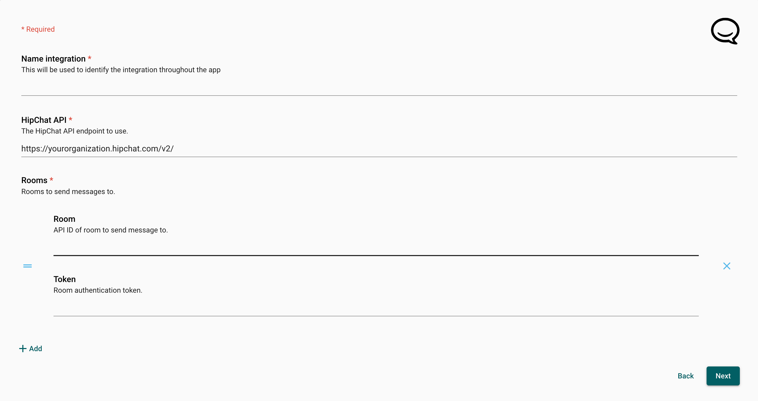 Select HipChat and fill in the required settings.