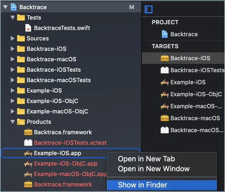 3. Add Backtrace to your target’s Frameworks, Libraries, and Embedded Content.