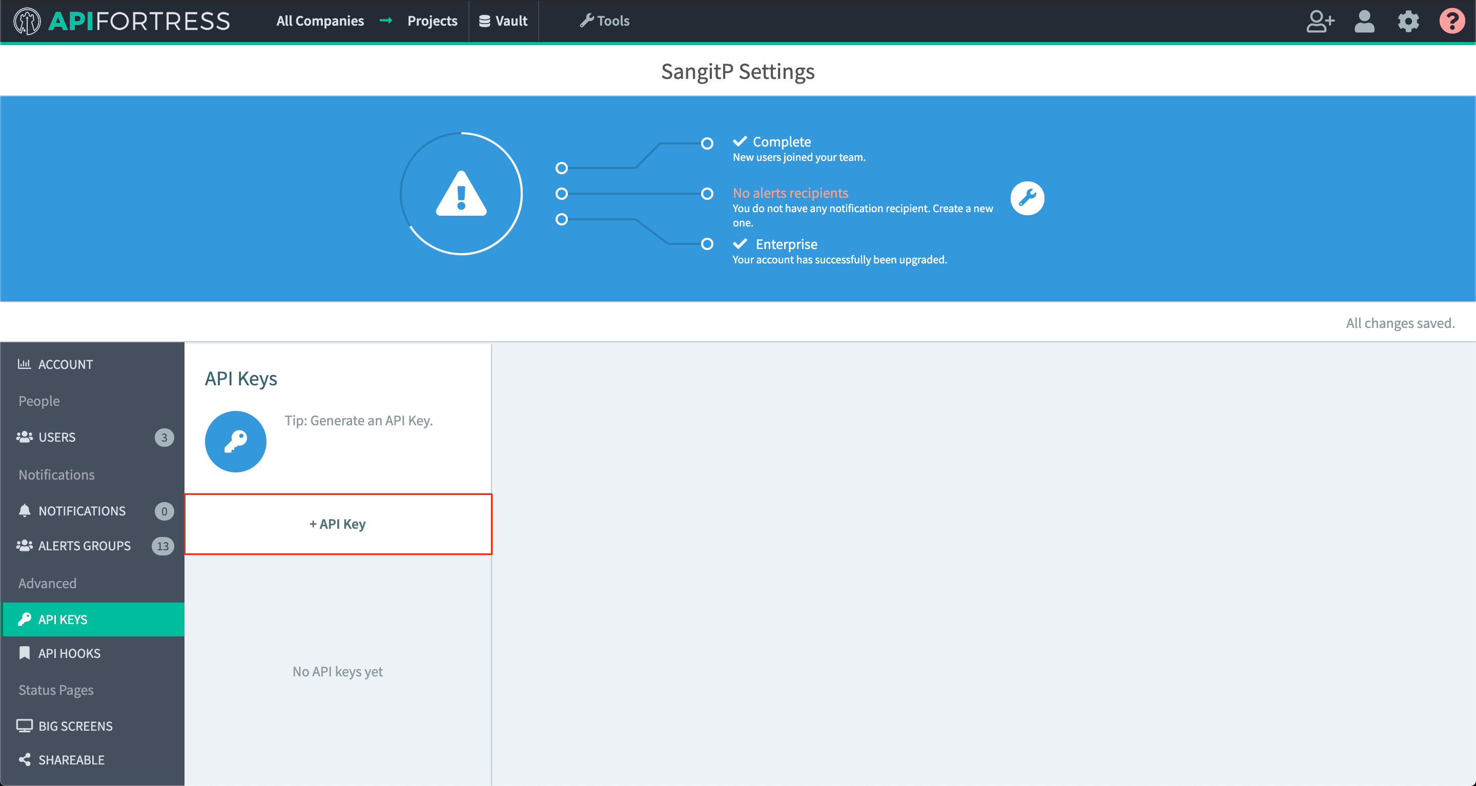 x-api-keyandx-secret- can be generated in API Fortress in the "Company Settings -> API KEYS"