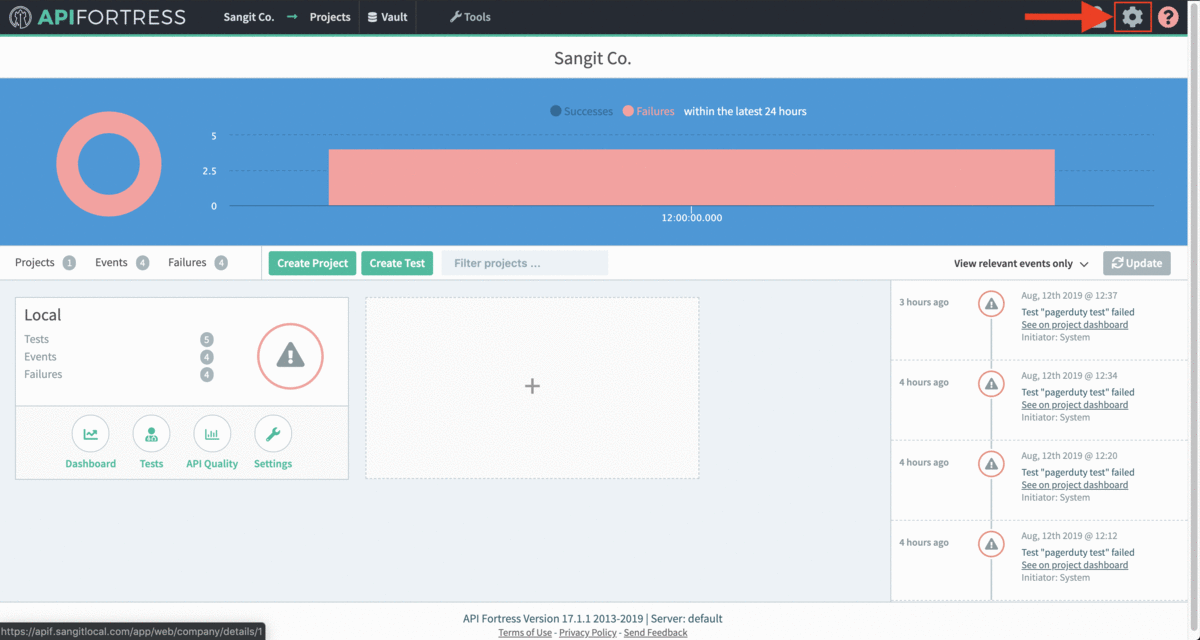 9. From the main dashboard, edit the “Settings” the project(s) you want to assign the alert group to if the group has not been assigned yet
