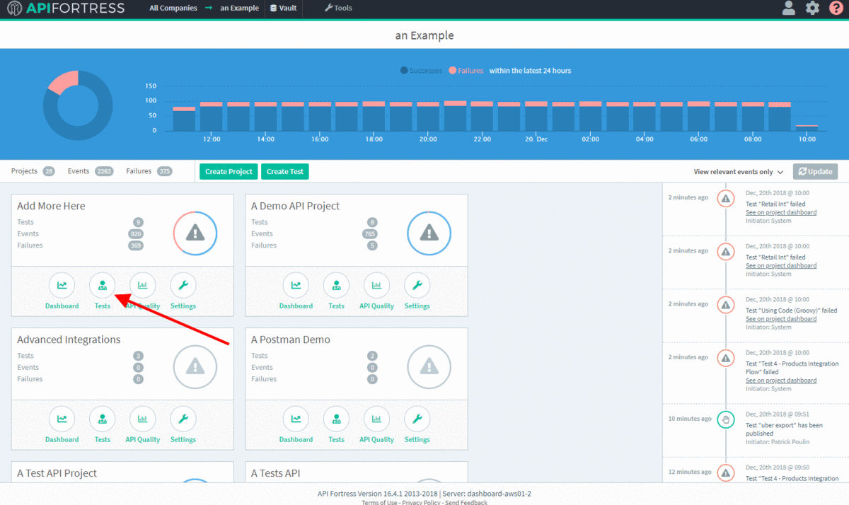 - Click Tests for a Project (folder) of your choice