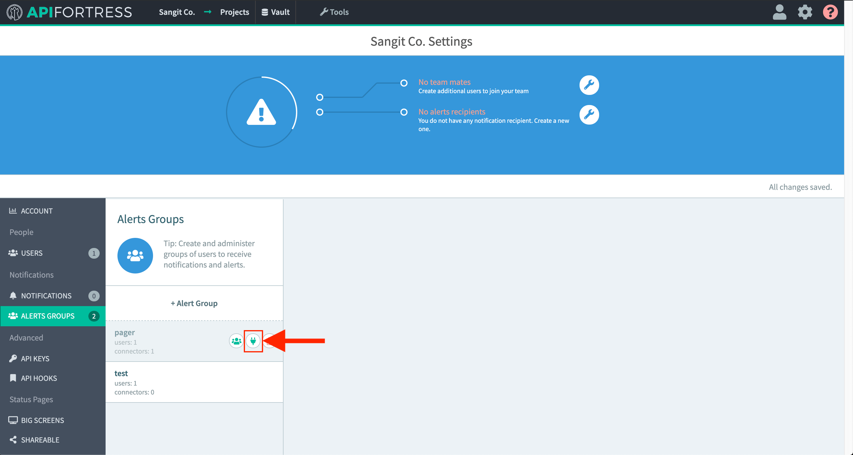 - Use an existing integration or create a new one specifically for API Fortress. The integration key provided is the