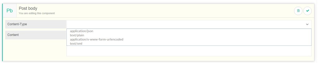 | Content-Type | 'application/json', 'text/plain', 'application/x-www-form-urlencoded','text/xml' | Yes |