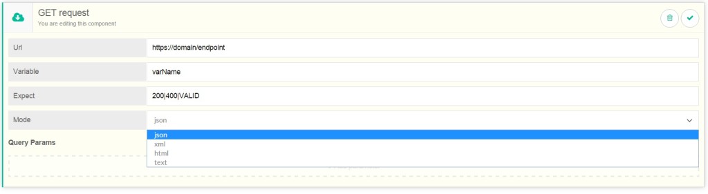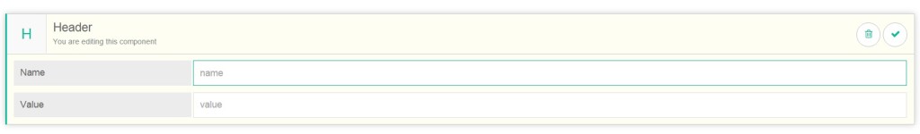 When all things are set up, you can confirm it by tapping on the 'tick' icon in the top right corner. After that, if you need to add headers, params or a body to the request you can do it by selecting the request and then tapping on the 'Add component': all the available components for each operation will be visible.