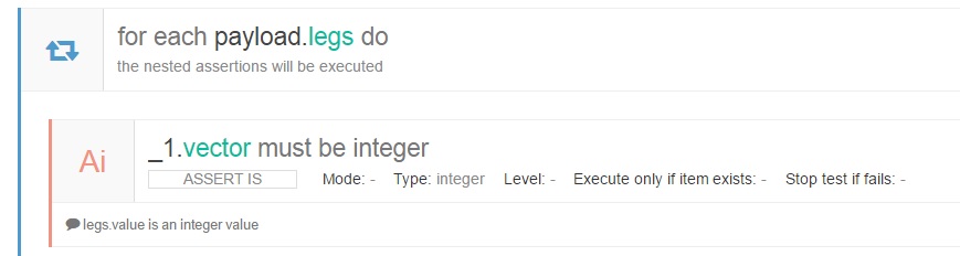 for each 'legs' collection checks if 'vector' item is an integer value.