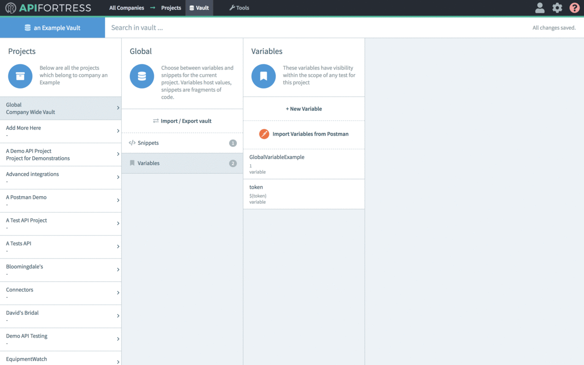 - Select the project that you want to access the variables through, or select the Global Vault if you want all of your projects to have access to the variable definitions.