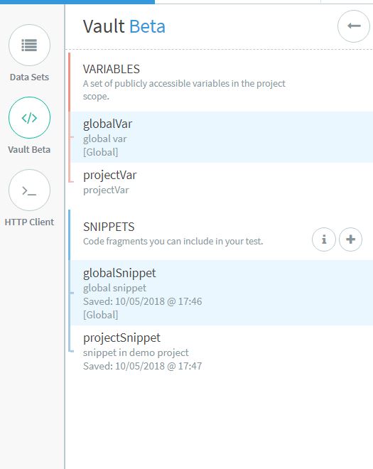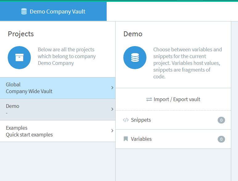 The Global Vault has been built to make variables and code snippets available across all of the projects in a company.
