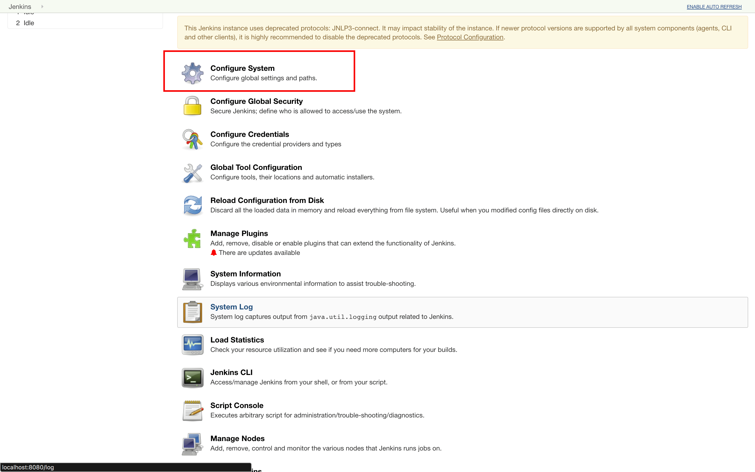 1. Click the "Configure System" option in the "Manage Jenkins" menu.