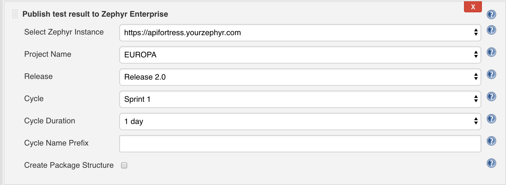 2. Select "Publish Test Results to Zephyr Enterprise." Since we configured the Zephyr plugin in step 2, Zephyr information should populate automatically from your Zephyr Enterprise instance.
