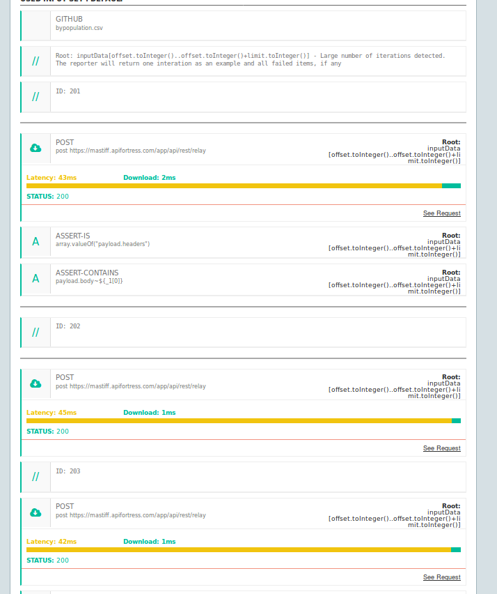 Now you can run the test on specific 100 elements slices, by selecting the environment.