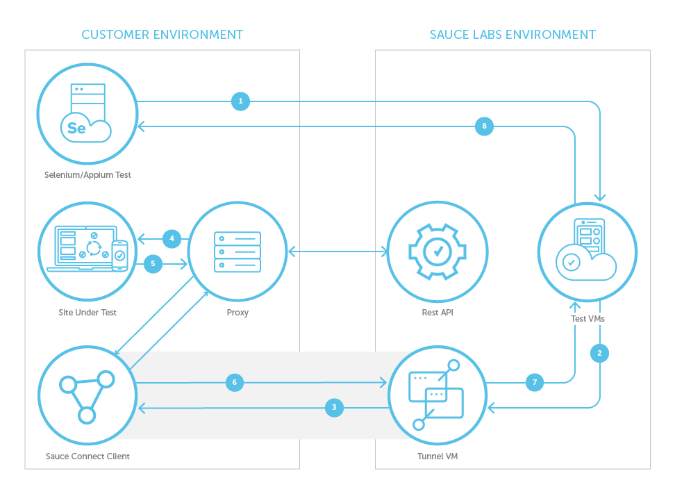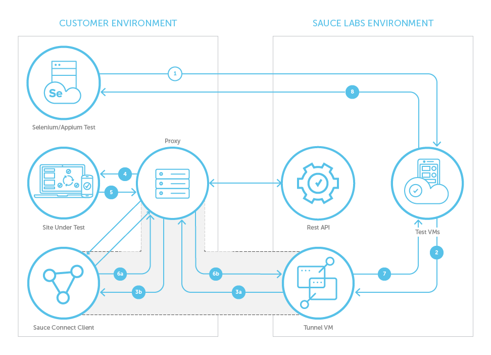 See the Sauce Connect Proxy Tunnel Startup Diagram for more information about how Sauce Connect Proxy initiates and maintains the connection with the Sauce Labs browser cloud.