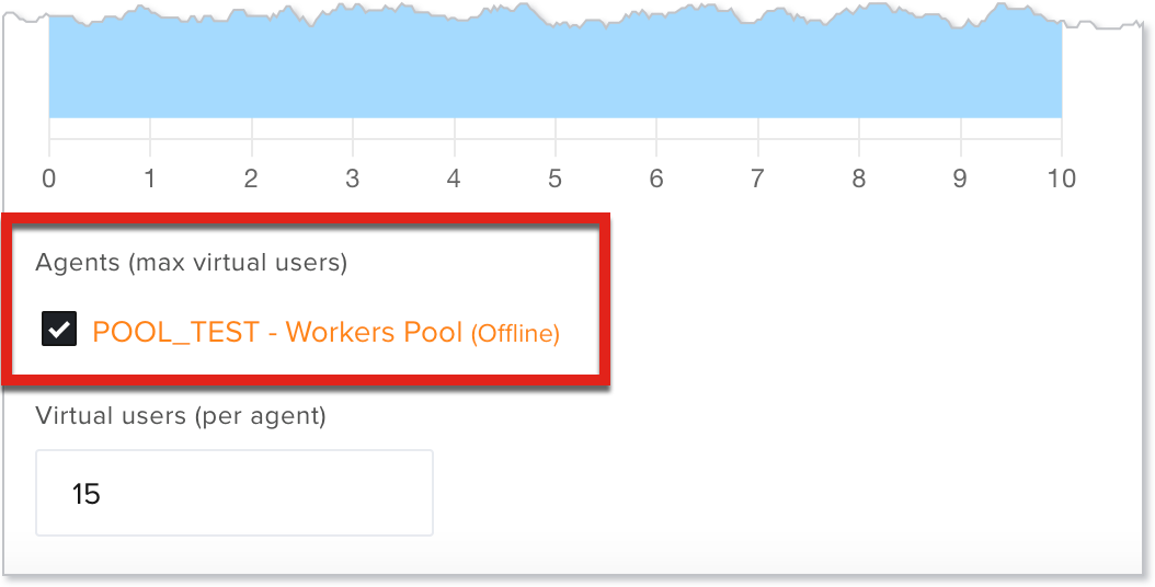 - Agents - The available agents (pools/workers) and the max virtual users you can set up for each one. This is the only mandatory field without any default, so you need to manually select the agents you want to set up. If these are not set up you will not be able to save or run the test.