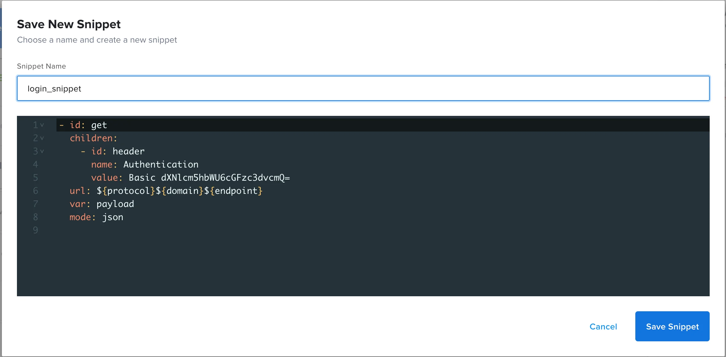 - Give the snippet a name and click Save Snippet