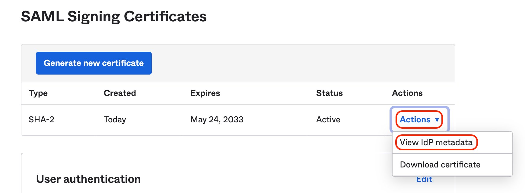 In the SAML Signing Certificates section, click Actions, and then View IdP metadata. A new tab opens. Copy the content, and save it as an XML file. Use this metadata file to set up the SSO Integration at Sauce Labs in the Organization Management Panel.