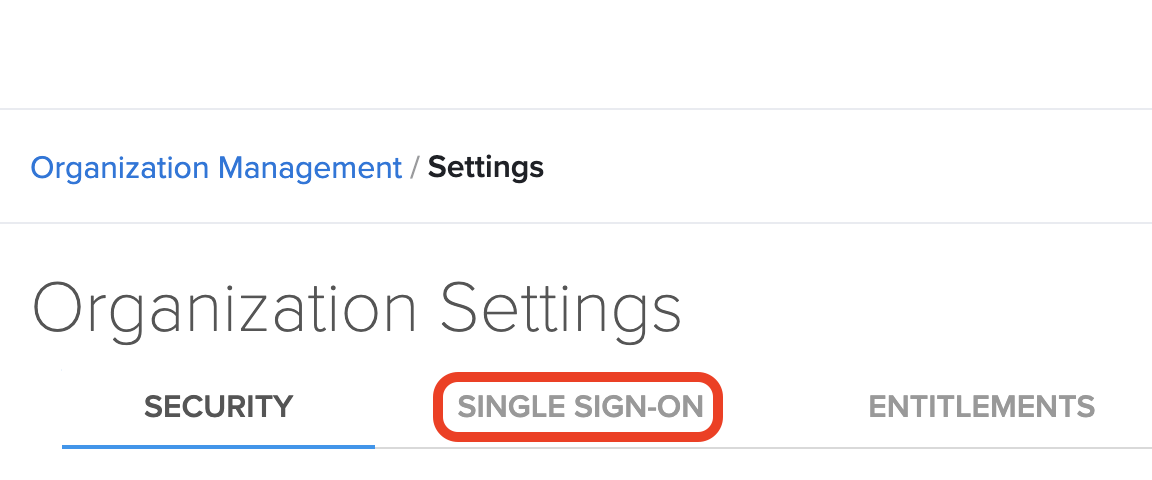 - On the Organization Settings page, click the SINGLE SIGN-ON tab.