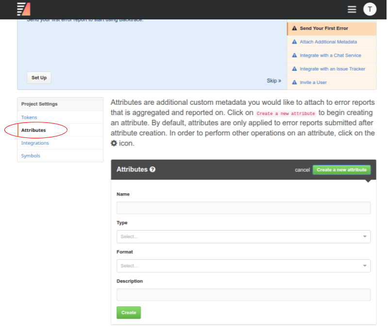 Backtrace recommends creating the following attributes by default: