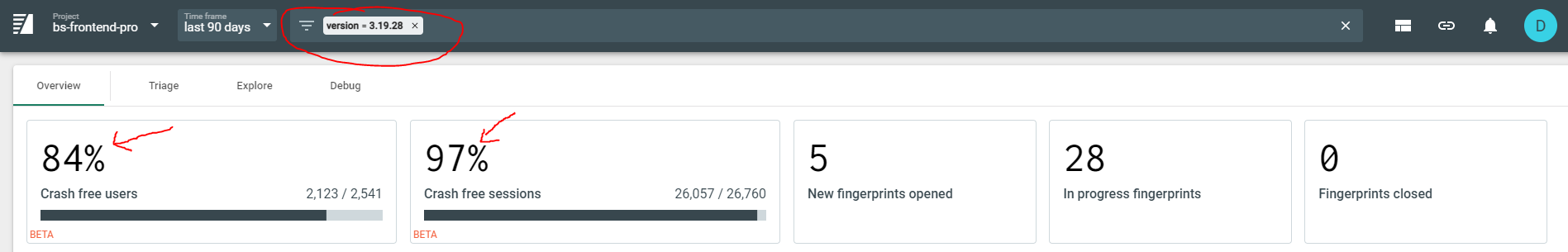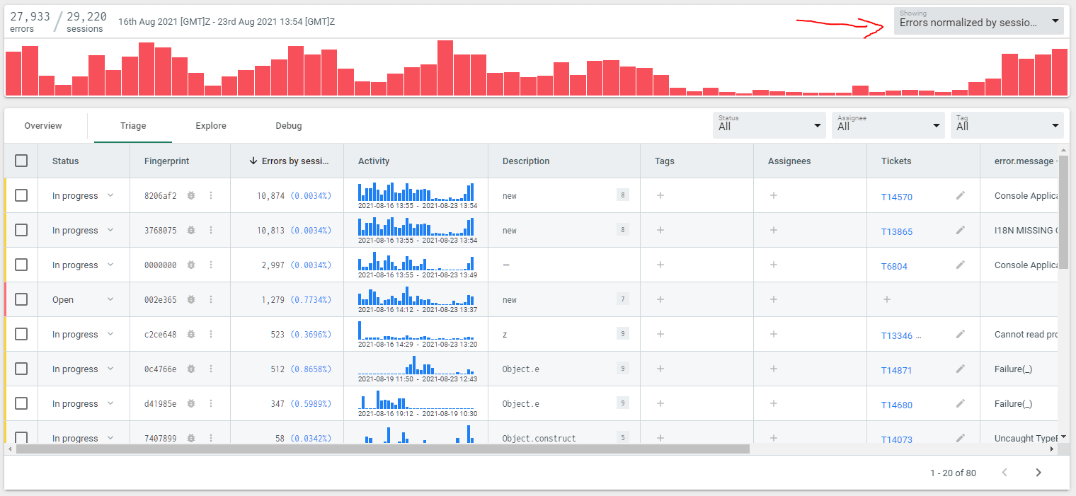 The Web Console's Triage and Explore views allow you to normalize your fingerprints against these metrics as well. This allows developers and tech leads to prioritize resolving crashes/errors that have the most impact on your app's stability.