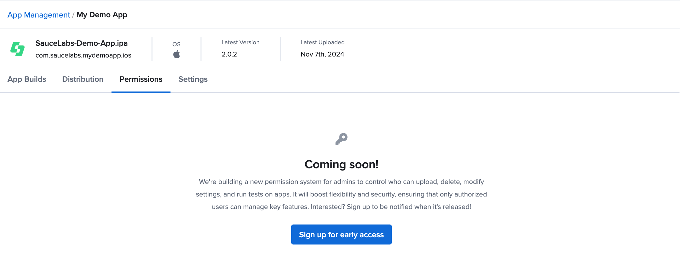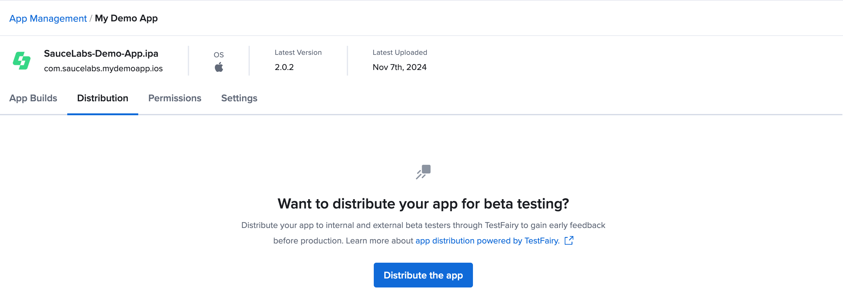 Distribute your app to internal and external beta testers through Sauce Mobile App Distribution to gain early feedback before production. Learn more about app distribution powered by Sauce Mobile App Distribution.