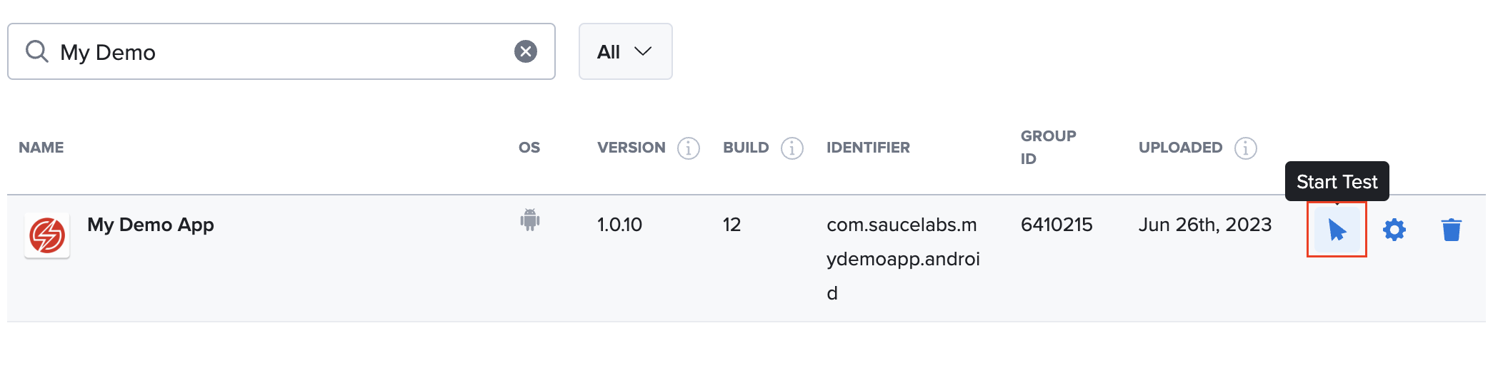 1. In Sauce Labs, click App Management, hover over the test and then click Settings.