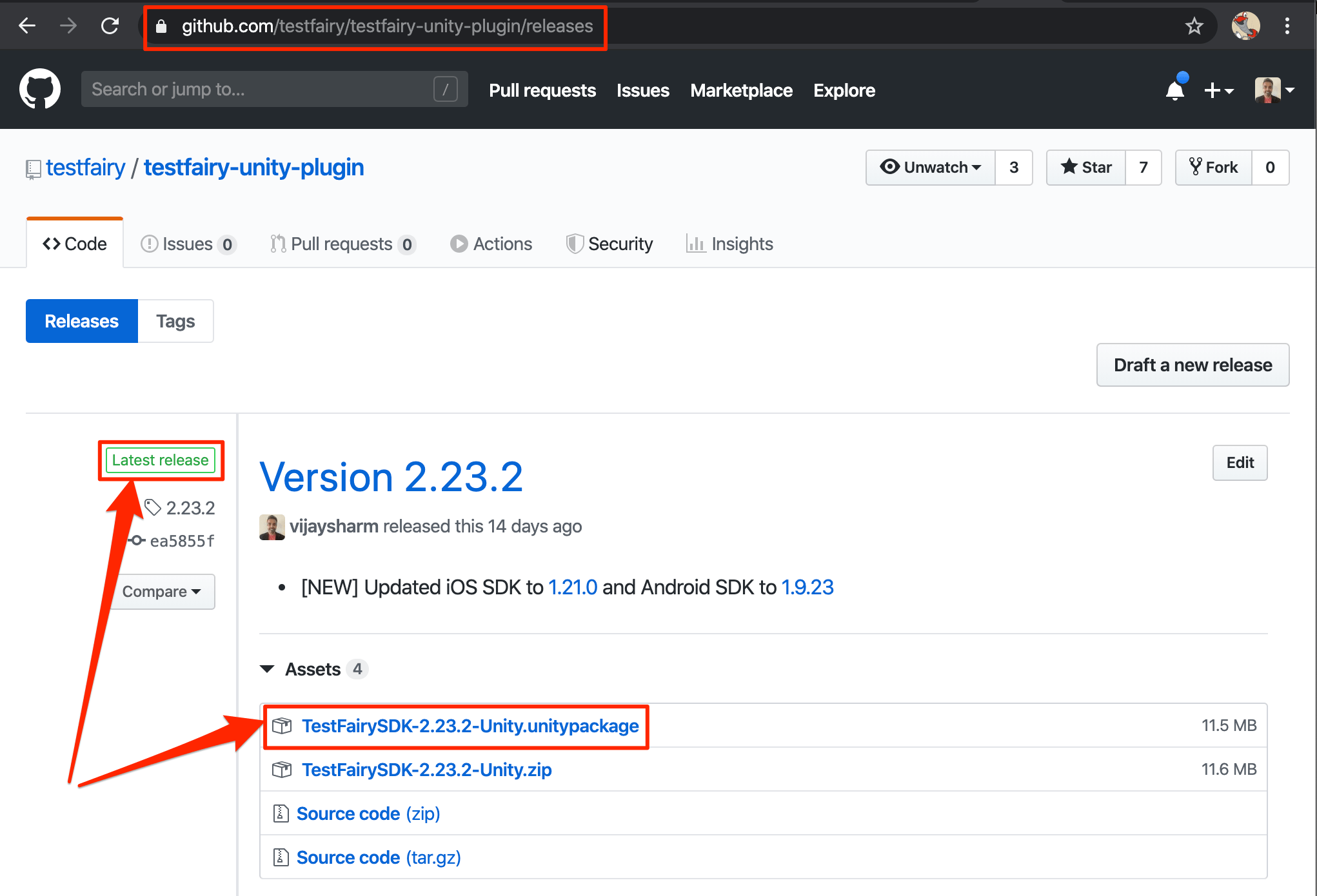 1. From the Sauce Mobile App Distribution Unity SDK GitHub page, download the latest version of the unitypackage.