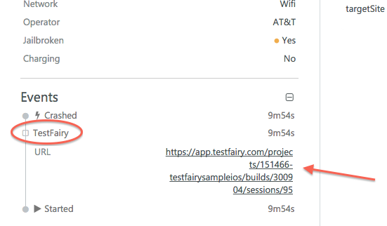 In the left sidebar of Insights, you see a link to the session recorded by Sauce Mobile App Distribution.