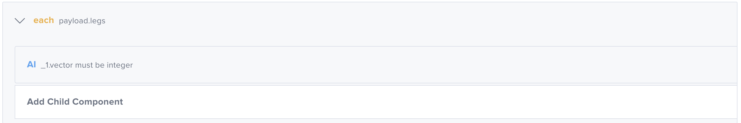 For Each legs collection, checks if the nested vector item is an integer value.Legs Collection Example