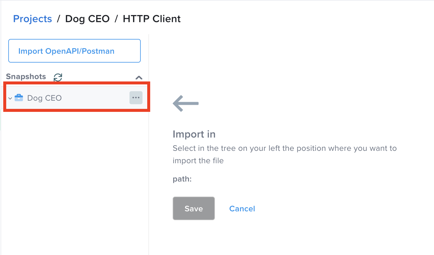 - Click the folder in your Snapshots tree where you'd like to save your file.