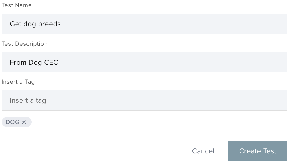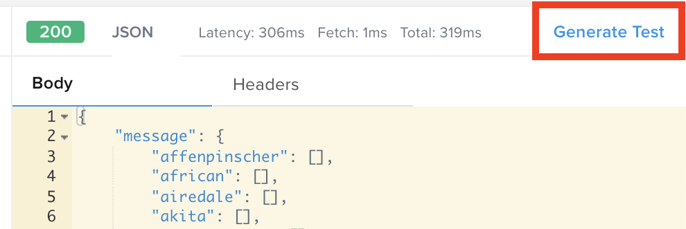 For the purpose of this Quickstart, we'll test a GET call from Dog CEO, a public API that generates a list of dog breeds.