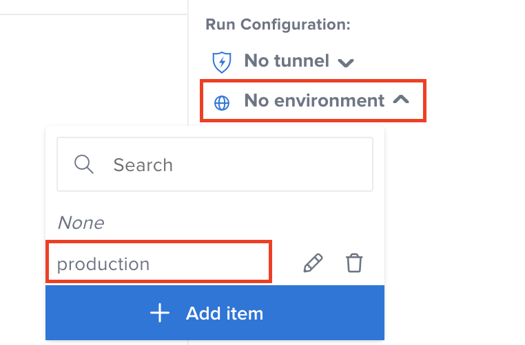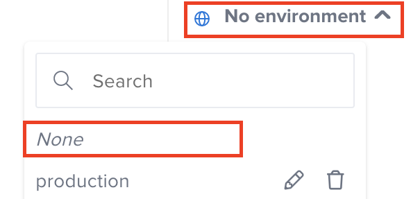 2. Click the Environments drodropdown list down (defaults to No environment), then select the name of the environment you want to use.