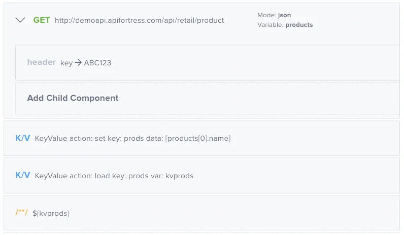 In this step, you retrieve the Key/Value pair from the store. In this example, we assign the retrieved value to the variable kvprods.