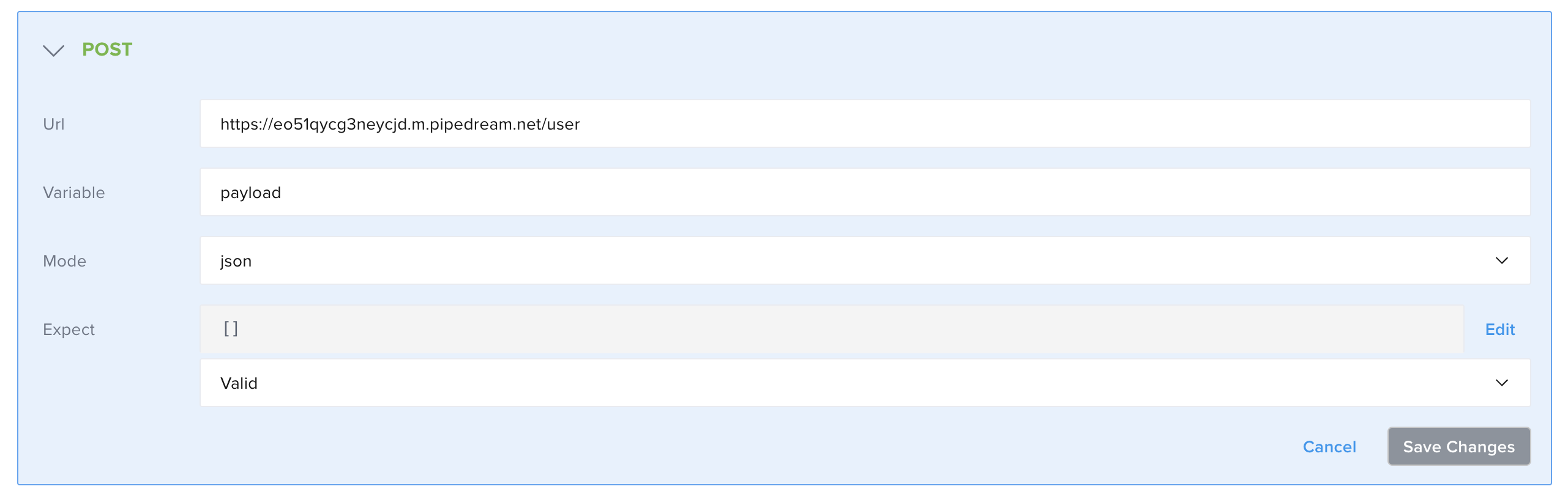 https://eo51qycg3neycjd.m.pipedream.net/user - Variable - for example