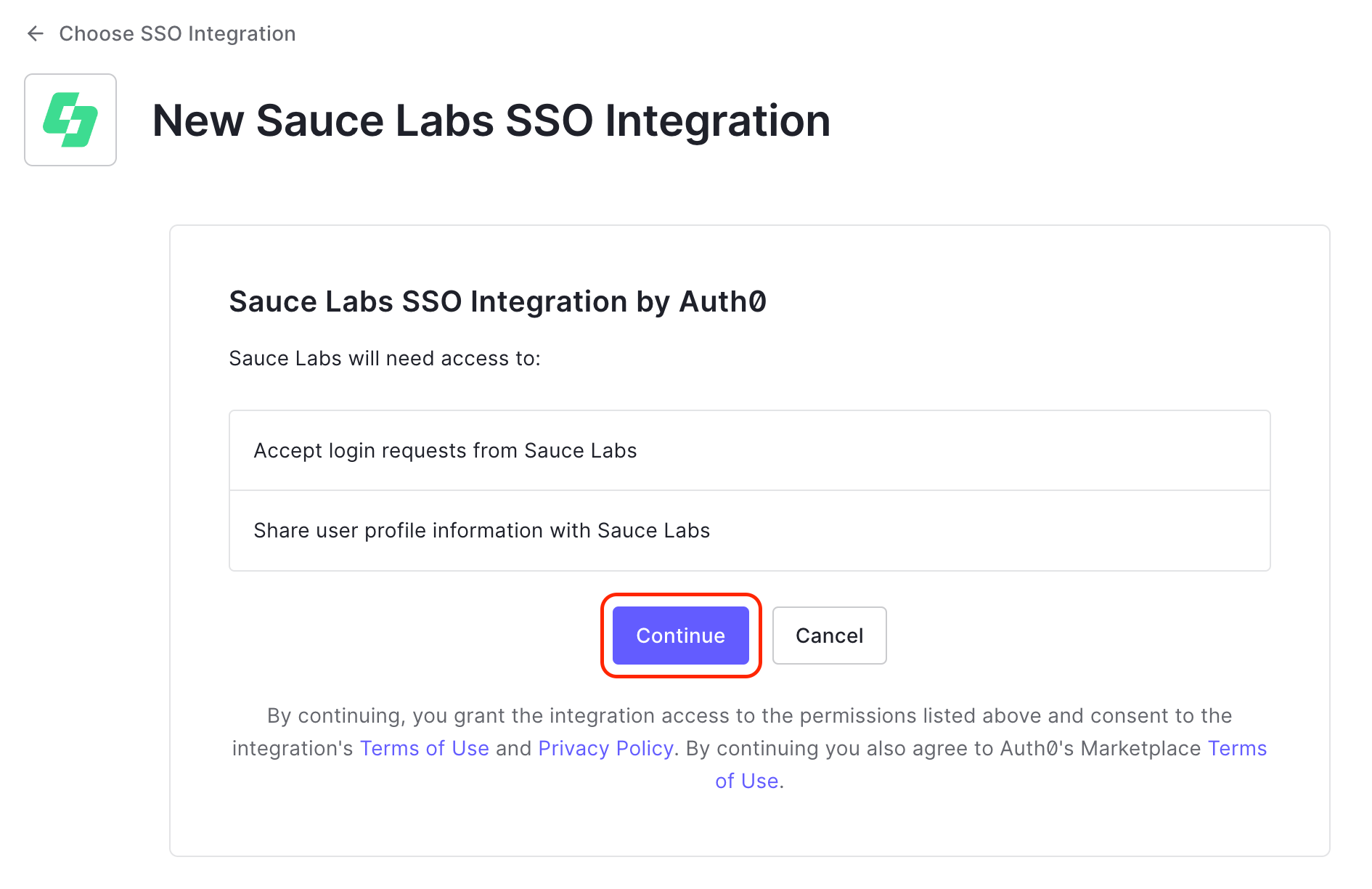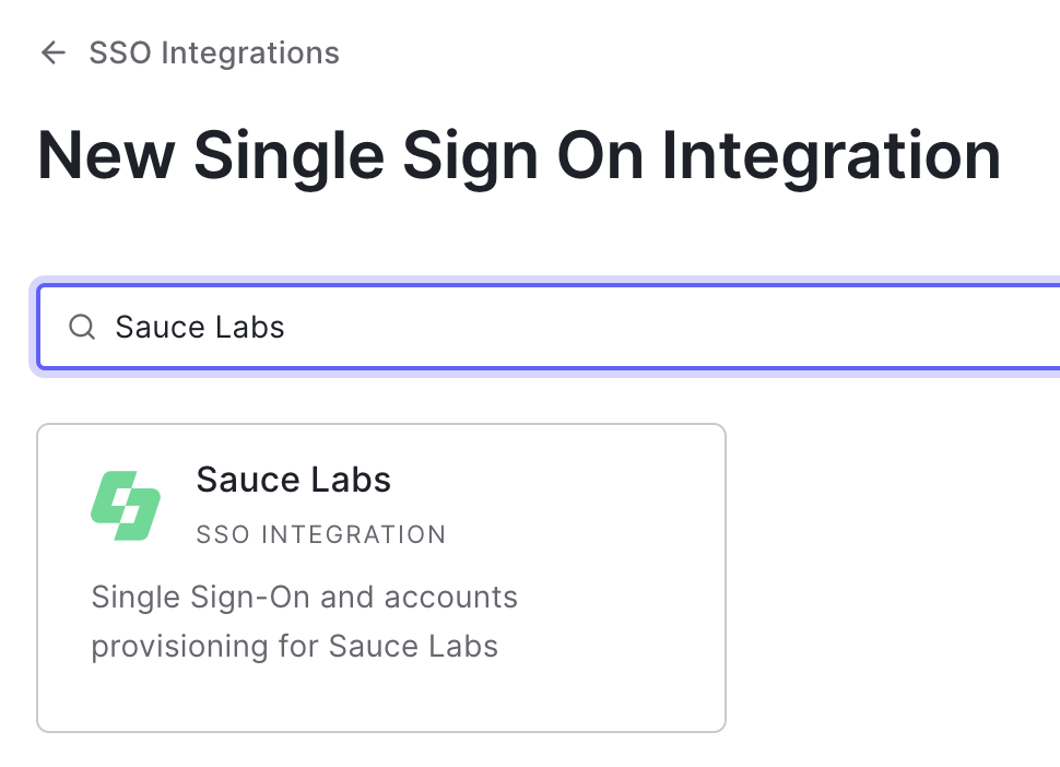 Type Sauce Labs in the search box and choose the app Sauce Labs from the search results.
