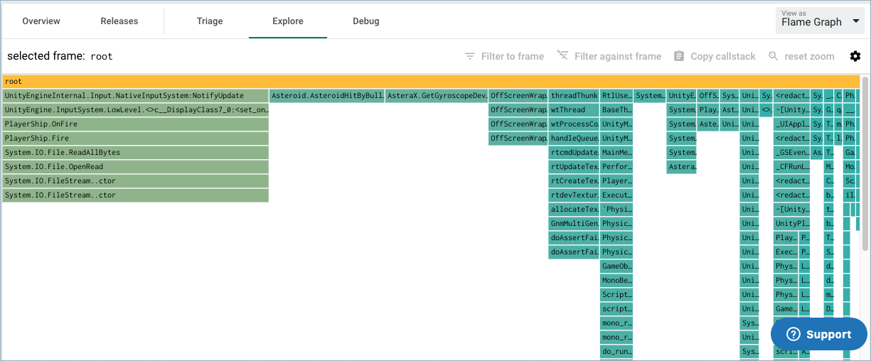 Below is an example flame graph of real instability data of our object store from development, experimental and production release channels.
